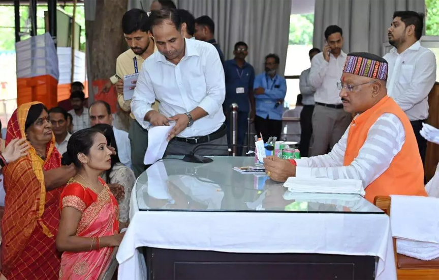 रायपुर 27 जून 2024। मुख्यमंत्री विष्णुदेव साय का साप्ताहिक जनदर्शन आज से प्रारंभ हो गया है। आज पहले ही दिन प्रदेश के दूर-दराज क्षेत्रों से आए आम नागरिकों एवं विभिन्न प्रतिनिधिमण्डलों ने सौजन्य मुलाकात कर मुख्यमंत्री को अपनी विभिन्न मांगों एवं समस्याओं से अवगत करा रहे हैं। जनदर्शन में मुख्यमंत्री सहज रूप से सभी से मुलाकात कर उनकी समस्याओं के संबंध में आवेदन ले रहे हैं। माताओं एवं बहनों के समूह ने महतारी वंदन योजना लागू करने के लिए मुख्यमंत्री के प्रति आभार जताते हुए कहा कि प्रदेश सरकार द्वारा महिलाओं के खाते में हर महीने एक हजार रूपए मिलने से उनकी हर छोटी-बड़ी समस्या दूर हो रही है। इस राशि से बहने अपने बच्चों की आवश्यक जरूरतों को भी पूरी कर रही है। महतारी वंदन योजना से माताओं एवं बहनों को आर्थिक रूप से संबल मिला है।