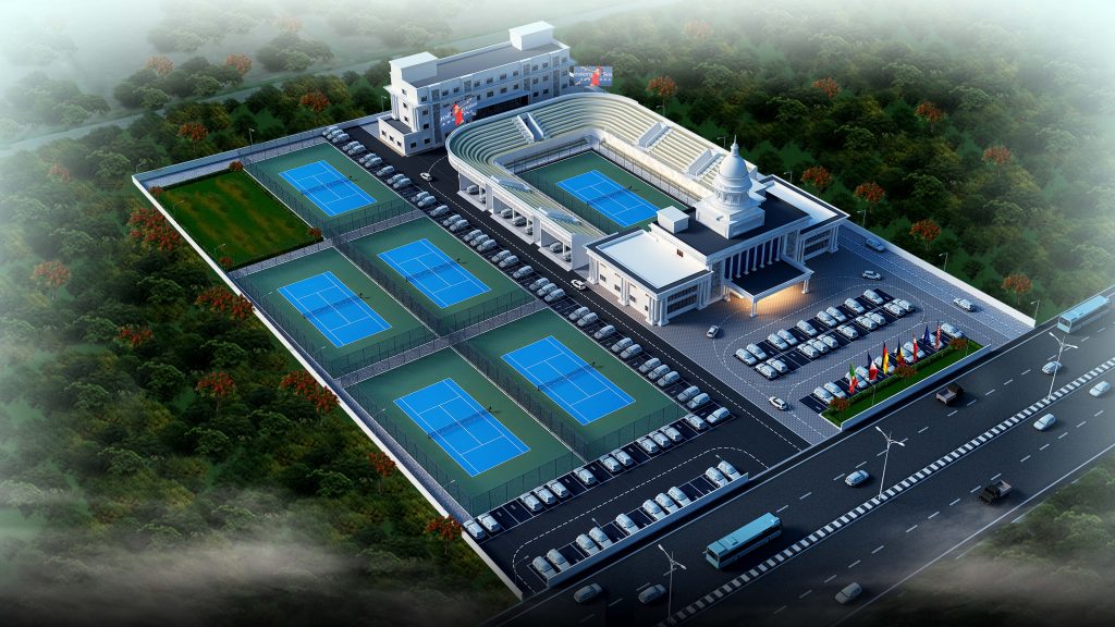 टेनिस स्पोर्ट अकादमी के अंतर्गत एडमिन बिल्डिंग, हॉस्टल बिल्डिंग और टेनिस कोर्ट का निर्माण किया जाएगा। एडमिन बिल्डिंग के भू-तल में वेटिंग रूम, रिसेेप्शन, दो चेंजिंग रूम, दो हॉल, पार्किंग एरिया एवं प्रथम तल में जिम, डायनिंग एरिया, वेटिंग एरिया तथा द्वितीय तल में व्ही.आई.पी. लॉज और 3500 क्षमता के पावेलियन का निर्माण किया जाएगा। हॉस्टल बिल्डिंग के भू-तल में रिसेप्शन एवं वेटिंग रूम, अधीक्षक रूम, कार्यालय, व्ही.आई.पी. रूम और पार्किंग, प्रथम तल में कैरम रूम, टेबल टेनिस रूम, किचन, डायनिंग। द्वितीय तल में 17 रूम, हाऊस किपिंग एवं तृतीय तल में 17 रूम हाऊस किपिंग का निर्माण किया जाएगा साथ ही एक इंटरनेशनल टैनिश कोर्ट (सिंथेटिक कोर्ट) और 5 प्रेकटिस कोर्ट (सिंथेटिक कोर्ट) का निर्माण किया जाएगा।