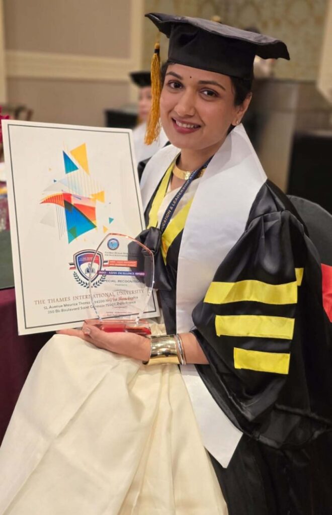 मुंबई 07 दिसंबर 2024। हिंदी फिल्म ‘कहीं है मेरा प्यार’ और मराठी फिल्म ‘ज़ोल झाल’ में अभिनय कर चुकी अभिनेत्री ईशा अग्रवाल ने हाल ही में थाईलैंड में डॉक्टरेट और इंडो एशियन एक्सीलेंस अवार्ड जीता है। महाराष्ट्र के एक छोटे से शहर से ताल्लुक रखने वाली ईशा ने अभिनय और मॉडलिंग के क्षेत्र में असाधारण सफलता हासिल की है। आर्ट और सोशल मीडिया मैनेजमेंट में डॉक्टरेट (पीएचडी) प्राप्त करने वाली ईशा ने कहा, “मेरा डॉक्टरेट कन्वोकेशन समारोह मेरे लिए एक अविस्मरणीय दिन था। जिस दिन से मुझे इस समारोह के लिए निमंत्रण मिला, उसी दिन से में अपने नाम के साथ ‘डॉ.’ जोड़ने के विचार मात्र से अति उत्साहित थी.। मेरे नाम की घोषणा ने मुझे पूरी तरह रोमांचित कर दिया और समारोह के दौरान मैं हर रोमांचक पल में डूबी रही!