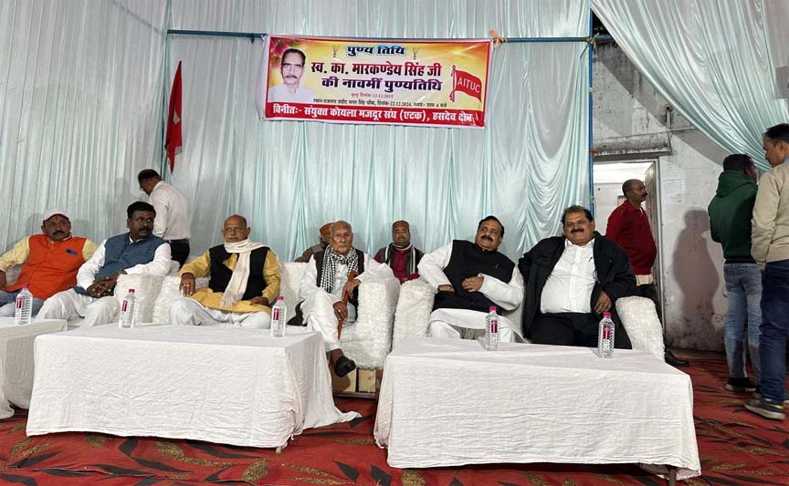 बिलासपुर/अम्बिकापुर 24 दिसंबर 2024। प्रतिवर्ष दिनांक 22 12 24 को भी प्रख्यात मजदूर नेता कॉ मारकंडेय सिंह जी की नवीं पुण्यतिथि में शामिल होने के लिए आये एटक के राष्ट्रीय उपाध्यक्ष मध्य प्रदेश के अध्यक्ष एस ई सी एल एस के एम एस के केन्द्रीय महामंत्री मुख्यातिथि व मुख्यवक्ता कार्यक्रम की शुरुआत सर्वप्रथम मारकंडेय सिंह जी की प्रतिमा पर पुष्पांजलि अर्पित कर नागरिकों के द्वारा श्रद्धांजलि अर्पित की गई तत्पश्चात वक्ताओं के द्वारा अपने-अपने विचार प्रकट किए गए मुख्य वक्ता के रूप में कॉ हरिद्वार सिंह जी ने मारकंडेय सिंह की जीवनी पर प्रकाश डालते हुए कहा कि मैं अपने जीवन में ऐसा अद्भुत क्षमता वान विचारों के धनी मारकंडेय सिंह जैसा व्यक्तित्व नेता के रूप में नहीं देखा नेताजी स्वयं में एक विचार थे जाति धर्म भाषा प्रांत दूर-दूर तक उन्हें छू नहीं पाया था भेदभाव नफरत उनके विचारों से भिन्न था ऐसी शख्सियत को हमें श्रद्धांजलि अर्पित करते हुए साहस और ऊर्जा प्राप्त होती है आगे कामरेड सिंह ने कहा कि हम जितना मजदूरों के हित में काम कर पाएंगे उतनी ही अच्छी श्रद्धांजलि होगी उन्होंने मज़दूर हित में आगे कहा कि कि आगामी 26 जनवरी को कंपनी स्तर पर 10000 कामगारों का प्रमोशन होगा, दूसरा लगभग 1600 कामगार जिन्हें जमीन के बदले नौकरी मिली थी वे लंबेअनुपस्थिति के कारण डिसमिस कर दिए गए हैं उनके प्रकरण का परीक्षण कर गुण दोष के आधार पर पुनः बहाली भी जा की जाएगी आगे उन्होंने कहा कि अभी दवाइयां की कुछ दिन पहले कमी थी जो पूरी तरह से उसकी आपूर्ति कर ली गई है रेगुलर कर्मचारियों के अलावा सेवा निव्रत कर्मचारियों को भी दवाइयां प्राप्त होगी ठेका कामगारों कि विषय में उन्होंने कहा कि एक लंबी लड़ाई के बाद हम विश्रामपुर एरिया के केतकी एवं गायत्री कोयला खदान में लाखों का बोनस भुगतान कराया गया है इस तरह हम लगातार मजदूरों के हित में हमारा संघर्ष जारी रहेगा उन्होंने आगे कहा कि केंद्र में शासित भाजपा की सरकार जन विरोधी किसान मजदूर विरोधी सरकार है यह मजहब के आधार पर शासन करना जानती है मजदूरों का आंदोलन अंग्रेजों को विवश कर दिया था बाद में आज़ाद भारत में 44 श्रम कानून अपने पक्ष में बनवाया था जिसे मोदी की सरकार ने खत्म करके चार लेबर कोड को लागू कर दिया गया है इसके जरिए मजदूरों के ऊपर मालिकों एवंैप्रबंधन का एक तरफा कार्रवाई होगा यह मोदी भाजपा की देन है कोयला उद्योग में वर्षों से भर्ती बंद है जिससे बेरोजगारो की लंबी कतार लगी हुई है महंगाई बेरोजगारी से जनता कराह रही है कॉ हरिद्वार सिंह जी ने कहा कि कंपनी को 9000 करोड़ का फायदा हुआ है जिसमें हमने प्रमुखता से इस बात को उठाया है कि हर मजदूर का उसमें भागीदारी है उन्हें पारितोषक वितरण किया जाए।