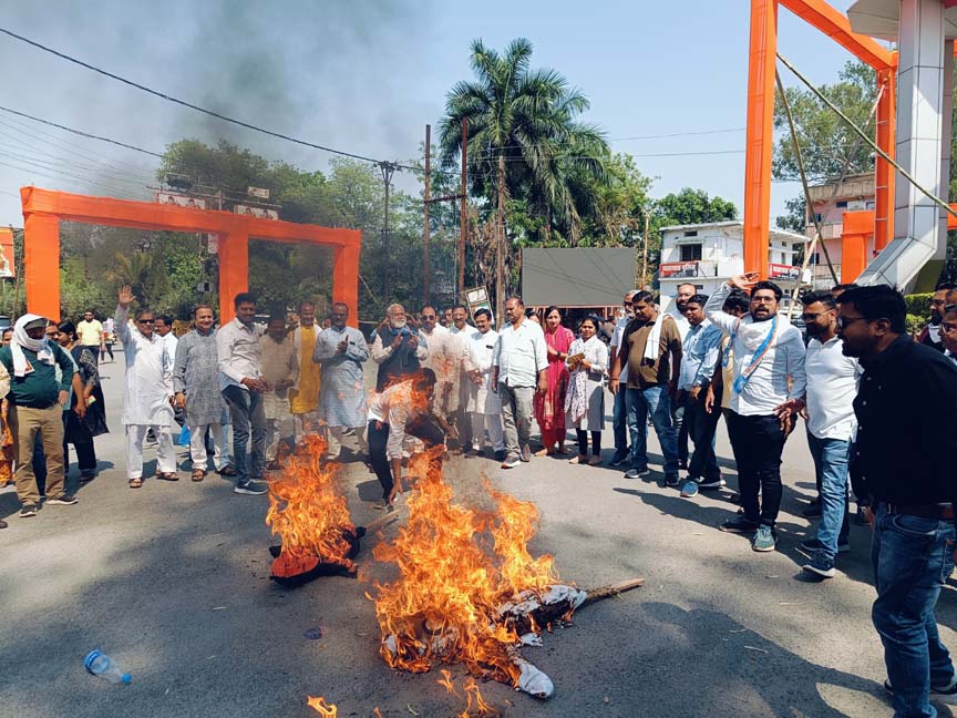 रायपुर 28 मार्च 2025। भाजपा की केंद्र सरकार के इशारे पर राष्ट्रीय महासचिव एवं पूर्व मुख्यमंत्री भूपेश बघेल, राष्ट्रीय सचिव एवं विधायक देवेन्द्र यादव सहित अन्य कांग्रेस नेताओं के निवास एवं कार्यालय में की गई द्वेषपूर्ण कार्यवाही के विरोध में कांग्रेस ने प्रदेश के सभी जिलों में केंद्र और राज्य की भारतीय जनता पार्टी सरकार का पुतला दहन कर विरोध प्रदर्शन किया। सीबीआई भारतीय जनता पार्टी के एजेंट की भांति काम कर रही है।