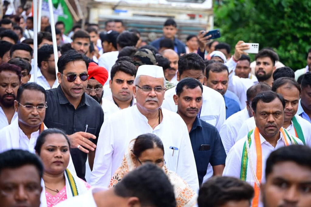 रायपुर 28 मई 2025। प्रदेश कांग्रेस अध्यक्ष दीपक बैज के नेतृत्व में बस्तर की समृद्धि संस्कृति संसाधन और पर्यावरण को बचाने के लिए चल रही चार दिवसीय न्याय यात्रा का आज दूसरे दिन बचेली से शुरू हुई जो धुरली पहुँची न्याय पदयात्री धुरली में रात्रि विश्राम करेंगे। न्याय यात्रा की तीसरी दिन की शुरुवात धुरली से होगी। कांग्रेस के राष्ट्रीय महासचिव एवं पूर्व मुख्यमंत्री भूपेश बघेल बचेली से शुरू हुई न्याय यात्रा में शामिल हुए। इस दौरान उन्होंने सभा को संबोधित किया एवं पदयात्रा की। प्रदेश कांग्रेस अध्यक्ष दीपक बैज ने कहा कि भाजपा सरकार के संरक्षण में चंद कॉर्पोरेट की बूरी नजर बस्तर के संसाधनों पर है। हाल ही में स्टार बीजापुर के कोरंडम खदान से पहले सैकड़ो पेड़ों की चुपचाप कटाई कर दी गई। वन विभाग, पर्यावरण विभाग और खनिज विभाग से अब तक इस पर कोई जवाब नहीं आया है। सरकार में बैठे जवाबदार लोग अनभिज्ञ होने का दावा कर रहे हैं। सवाल यह है कि बस्तर के संसाधनों को लूटने का इस तरह का आदेश दे कौन रहा है? भाजपा सरकार की कथनी और करनी में अंतर है। आदिवासी मुख्यमंत्री को कठपुतली बनाकर आदिवासी विरोधी निर्णय थोपे जा रहे हैं। जल, जंगल, जमीन के अधिकार आदिवासियों से छीने जा रहे हैं। एनएमडीसी के नगरनार प्लांट का निजीकरण नहीं करने का वादा देश के प्रधानमंत्री और गृह मंत्री ने विधानसभा और लोकसभा चुनाव के दौरान किया था लेकिन आज भी केंद्र सरकार के निजीकरण के वेबसाइट पर प्रक्रियाधीन है। भाजपा सरकार के द्वारा छत्तीसगढ़ को कॉर्पोरेट का चारागाह बनाने के कुत्सित प्रयास के खिलाफ कांग्रेस का संघर्ष जारी रहेगा।