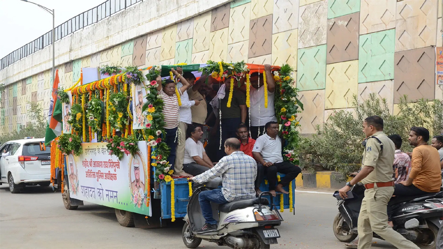 रायपुर 10 जून 2025। छत्तीसगढ़ के सुकमा जिले के कोन्टा-एर्राबोरा मार्ग पर नक्सलियों के बिछाये आईईडी की चपेट में आकर कोंटा के एएसपी आकाश राव गिरपून्जे बलिदान हो गये। आज मंगलवार को सुबह नौ बजे के बाद रायपुर के कुशालपुर स्थित निवास से उनकी अंतिम यात्रा निकली। उन्हें विदाई देने बड़ी संख्या में लोग उनके निवास पर पहुंचे। “जब तक सूरज चांद रहेगा, आकाश तेरा नाम रहेगा” के नारे के साथ उनकी यात्रा में रायपुर कलेक्टर, निगम आयुक्त, सीईओ जिला पंचायत सहित जिला अधिकारी, परिजन, शहरवासी बड़ी संख्या में शामिल हुए। रायपुर के महादेवघाट स्थित श्मशान घाट में उनका अंतिम संस्कार किया जायेगा। माना स्थित चौथी बटालिन में वीरगति को प्राप्त गिरपून्जे को गॉर्ड ऑनर दिया गया। सीएम साय ने पुष्प चक्र अर्पित कर उन्हें अंतिम श्रद्धांजलि दी। पुलिस फोर्स ने उन्हें अंतिम सलामी दी।