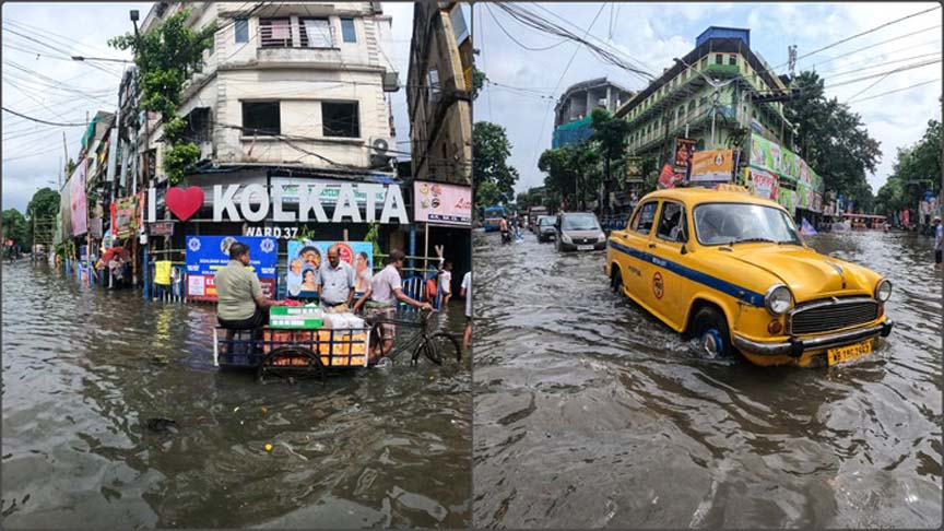 कोलकाता 24 सितंबर 2025। कोलकाता ने सोमवार आधी रात से मंगलवार सुबह तक ऐसी बारिश देखी, जिसने पिछले कई दशकों का रिकॉर्ड तोड़ दिया। सात घंटे में 252 मिमी बारिश हुई, जो शहर की सालाना औसत बारिश (1,345.5 मिमी) का करीब 20% है। तेज बारिश के कारण शहर के कई बड़े इलाकों को जलमग्न देखा गया। इस बारिश में कम से कम 10 लोगों की मौत हो गई, जबकि सड़क, रेल और हवाई यातायात बुरी तरह प्रभावित हुआ। मौसम के इस कहर से राज्य के सबसे बड़े त्योहार दुर्गा पूजा की तैयारियों पर भी संकट छा गया है। राजधानी कोलकाता में बारिश सोमवार आधी रात के करीब शुरू हुई और मंगलवार सुबह तक लगातार होती रही। सबसे ज्यादा बारिश वाले इलाकों की बात करें, तो इसमें गरिया- 332 मिमी, जोधपुर पार्क- 285 मिमी, कालीघाट- 280 मिमी, टॉस्पिया- 275 मिमी, बालीगंज- 264 मिमी, चेतला- 262 मिमी, मोमिनपुर- 234 मिमी, बेलेघाटा- 217 मिमी, धापा- 212 मिमी, अल्टाडांगा- 207 मिमी; शामिल हैं।