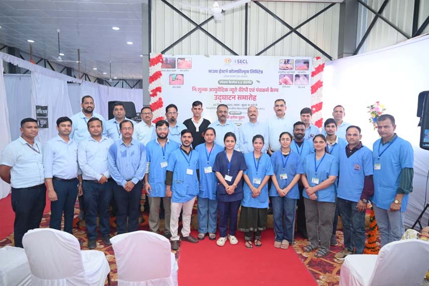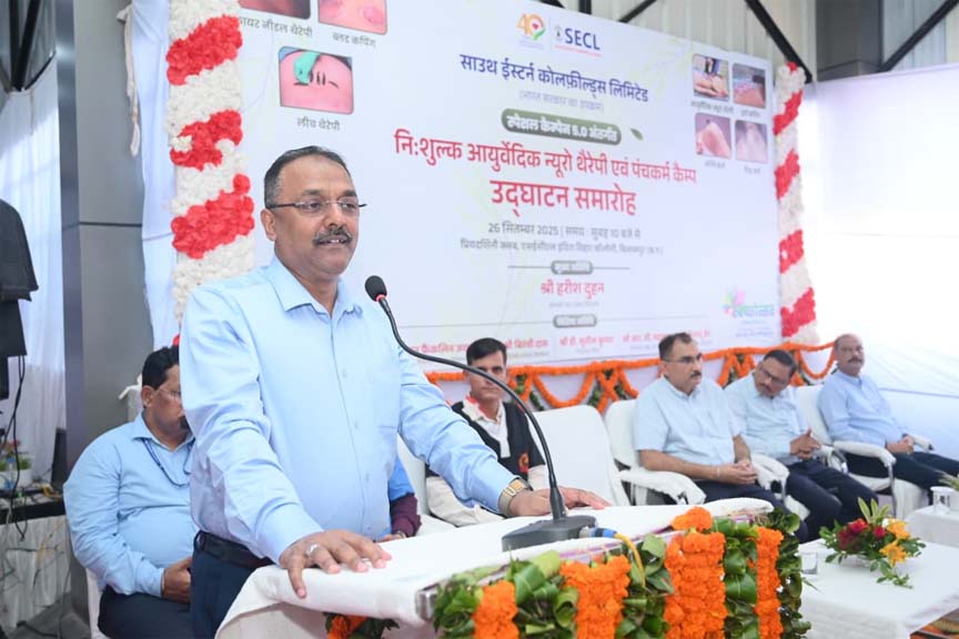 बिलासपुर 27 सितंबर 2025। एसईसीएल सीएमडी हरीश दुहन के दिशा-निर्देश से स्वच्छता ही सेवा 2025 अभियान के अंतर्गत एक और ऐतिहासिक पहल करते हुए प्रियदर्शिनी क्लब, इंदिरा विहार कॉलोनी, बिलासपुर में निःशुल्क आयुर्वेदिक न्यूरोथेरेपी एवं पंचकर्म कैम्प का शुभारंभ मुख्य अतिथि निदेशक (मानव संसाधन) बिरंची दास के करकमलों से आज दिनांक 26 सितम्बर 2025 को डॉ. श्रुतिदेव मिश्रा (प्रमुख चिकित्सा सेवायें, एसईसीएल), डॉ. महेन्द्र रघुवंशी (एमडी न्यूरोथेरेपी एवं वात रोग विशेषज्ञ), महाप्रबंधक (कल्याण) श्यामला राव, महाप्रबंधक (सीएसआर) सी.एम. वर्मा, उप महाप्रबंधक (मानव संसाधन-प्रशासन/जनसंपर्क/राजभाषा) मनीष श्रीवास्तव, प्रबंधक (सिविल) भानु सिंह की उल्लेखनीय उपस्थिति में हुआ । अपने उद्बोधन में मुख्य अतिथि बिरंची दास ने इस पहल को अत्यंत सराहनीय बताते हुए कहा कि आधुनिक जीवनशैली और मोबाइल के अत्यधिक प्रयोग से उत्पन्न दुष्प्रभावों से बचाव के लिए हमारी पुरातन आयुर्वेदिक चिकित्सा पद्धतियाँ अत्यंत प्रभावी हैं। उन्होंने अपने संबोधन में दशहरा पर्व की अग्रीम बधाई देते हुए कर्मीगण एवम उनके परिवारजनों को अधिकाधिक मात्रा में उपस्थित होकर इसका लाभ लेने का आव्हान किया ।