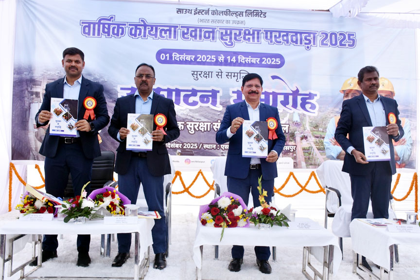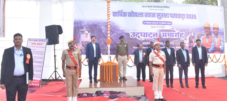 बिलासपुर 01 दिसंबर 2025। दिनांक 01 दिसंबर से 14 दिसंबर 2025 तक आयोजित वार्षिक कोयला खान सुरक्षा पखवाड़ा 2025 का उद्घाटन दिनांक 01.12.2025 को एसईसीएल मुख्यालय प्रांगण में अध्यक्ष सह प्रबंध निदेशक हरीश दुहन ने निदेशक तकनीकी (संचालन) एन. फ्रैंकलिन जयकुमार, निदेशक (कार्मिक) बिरंची दास, मुख्य सतर्कता अधिकारी हिमांशु जैन, विभिन्न विभागाध्यक्षों, अधिकारियों-कर्मचारियों, विभिन्न श्रमसंघ प्रतिनिधियों की उपस्थिति में सुरक्षा ध्वज फहराकर किया गया। मुख्य अतिथि अध्यक्ष सह प्रबंध निदेशक हरीश दुहन ने अपने उद्बोधन में कहा कि हम सभी को मिलकर शून्य दुर्घटना लक्ष्य की प्राप्ति के लिए लगातार प्रयास करते रहने होगा। हम सभी को जाने-अनजाने कोई भी ऐसा काम नहीं करना है जिससे हमारी या हमारे साथियों की जान जोखिम में पड़ जाए और सुरक्षा हम सभी की ज़िम्मेदारी इस विचारधारा के साथ हमें कार्यनिष्पादन करना होगा। खदान में शून्य दुर्घटना लक्ष्य की प्राप्ति के लिए हमें हरसंभव प्रयास करना होगा और खदानों में कर्मियों में सुरक्षा के प्रति जागरूकता को बढ़ावा देने के लिए निरंतर प्रयास करते रहना होगा।