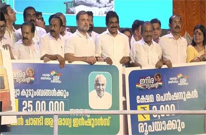 नई दिल्ली 08 मार्च 2026। आगामी केरल विधानसभा चुनाव को ध्यान में रखते हुए Rahul Gandhi ने राज्य के मतदाताओं को साधने के लिए कई बड़े वादे किए हैं। तिरुवनंतपुरम में आयोजित कार्यक्रम के दौरान उन्होंने कांग्रेस की ओर से पांच प्रमुख गारंटियों की घोषणा की। इन योजनाओं का फोकस महिलाओं, युवाओं और वरिष्ठ नागरिकों को आर्थिक और सामाजिक सुरक्षा देने पर रखा गया है। राहुल गांधी ने कहा कि इन प्रस्तावों का मकसद राज्य में जीवन स्तर सुधारना और परिवारों को आर्थिक सहारा देना है।
