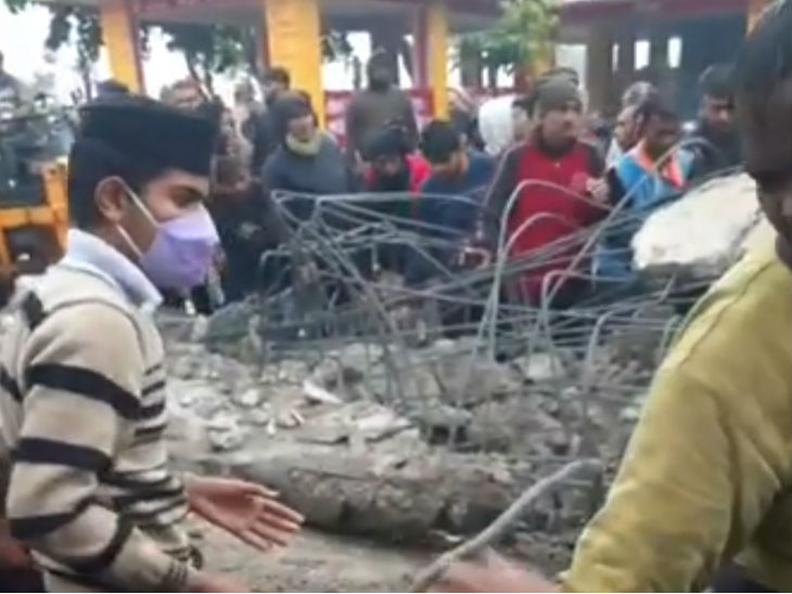 दयानंद कॉलोनी निवासी दयाराम की शनिवार की रात बीमारी के चलते मौत हो गई थी। उनके अंतिम संस्कार में 100 से ज्यादा मोहल्लेवासी व रिश्तेदार शामिल हुए थे। अंतिम संस्कार की प्रक्रिया चल रही थी। पुजारी के आह्वान पर सभी लोग श्मशान घाट परिसर में बने भवन के अंदर खड़े होकर आत्म शांति पाठ कर रहे थे। इसी दौरान एक तरफ की जमीन अचानक धंस गई। परिणाम स्वरूप दीवार नीचे बैठ गई और लेंटर गिर गया।