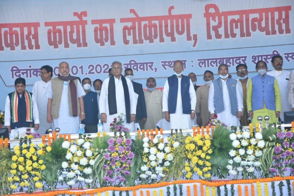 मुख्यमंत्री भूपेश बघेल ने आज अपरान्ह बिलासपुर में आयोजित कार्यक्रम में 650 करोड़ रूपए के विकास एवं निर्माण कार्यों का लोकार्पण एवं भूमिपूजन किया। मुख्यमंत्री ने इस मौके पर नववर्ष की शुभकामनाएं देते हुए कहा कि हमारे पुरखों ने छत्तीसगढ़ राज्य निर्माण का जो सपना देखा था, उस सपने को छत्तीसगढ़ सरकार साकार कर रही है। छत्तीसगढ़ राज्य में छत्तीसगढ़िया सरकार बनी है, जिसकी वजह से किसानों, आदिवासियों, मजदूरों एवं समाज के गरीब तबके के लोगों के जीवन में बीते दो सालों में खुशहाली आयी है।