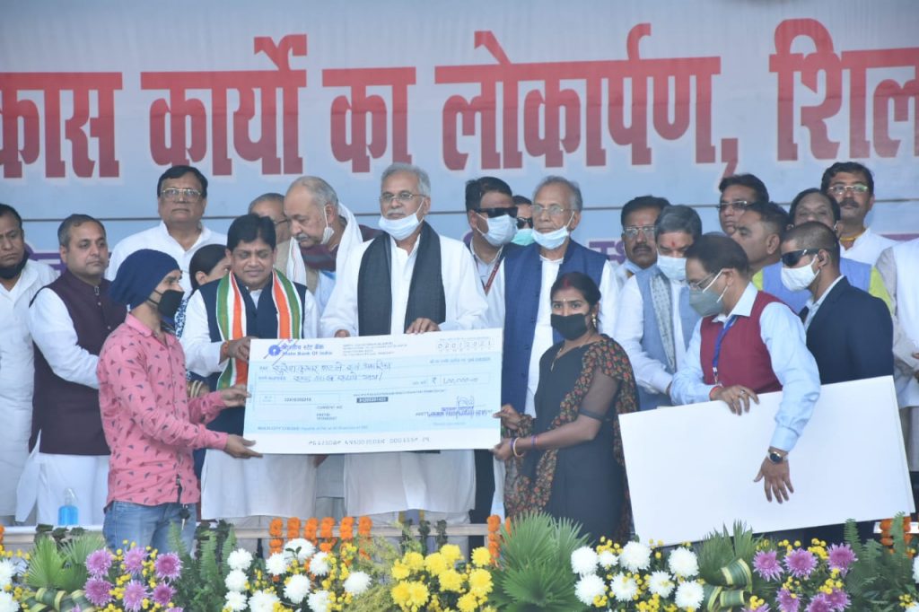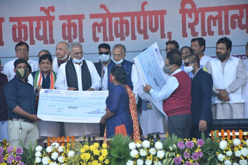 मुख्यमंत्री भूपेश बघेल ने इस अवसर पर शासन की विभिन्न योजनाओं के अंतर्गत चेक एवं हितग्राहीमूलक सामग्रियों का वितरण भी किया।
