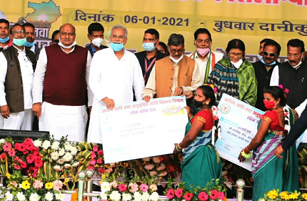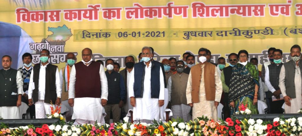 रायपुर 6 जनवरी 2021। मुख्यमंत्री भूपेश बघेल ने आज प्रदेश के नवगठित गौरेला-पेण्ड्रा-मरवाही जिले के प्रवास के दौरान मरवाही विकासखंड के ग्रामी दानीकुण्डी में आयोजित विकास कार्यों के लोकार्पण शिलान्यास समारोह में 8 करोड़ 54 लाख रूपए की लागत के 39 विकास कार्यों का लोकार्पण और भूमिपूजन किया। मुख्यमंत्री भूपेश बघेल ने 6 करोड़ 26 लाख रूपए की लागत के 25 विकास कार्यों का लोकार्पण और 2 करोड़ 28 लाख रूपए की लागत के 14 कार्यों का भूमिपूजन किया। मुख्यमंत्री भूपेश बघेल ने कार्यक्रम में शासन की विभिन्न कल्याणकारी योजनाओं के अंतर्गत 337 हितग्राहियों को साढ़े तेरह लाख रूपए की सामग्री और 230 हितग्राहियों को कुल 4 करोड़ 61 लाख रूपए की सहायता और अनुदान राशि का चेक वितरित किया।
