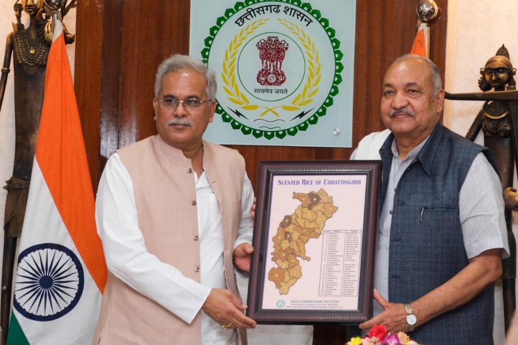 कृषि मंत्री रविन्द्र चौबे ने कहा कि राज्य सरकार की प्राथमिकता छत्तीसगढ़ में कृषि, उद्यानिकी और वानिकी क्षेत्र का विकास करना है। पिछले दो वर्षाें में 8 नए कृषि महाविद्यालय प्रारंभ किया गया है। छत्तीसगढ़ के विकास में इंदिरा गांधी कृषि विश्वविद्यालय महत्वपूर्ण योगदान दे रहा है। उन्होंने कहा कि मुख्यमंत्री के नेतृत्व में जब कोविड के कारण देश में आर्थिक गतिविधियां ठप थी। छत्तीसगढ़ का सौभाग्य रहा कि सारी बाधाओं के बाद भी किसानों, मजदूरों और वनांचल के रहवासियों को आर्थिक गतिविधियों से जोड़े रखा। दो वर्षाें में विश्वविद्यालय ने 34 नई प्रजातियों के बीज विकसित किए। इंदिरा गांधी कृषि विश्वविद्यालय के कुलपति डॉ. एस.के. पाटिल ने स्वागत भाषण दिया और विश्वविद्यालय की गतिविधियों की जानकारी दी। कार्यक्रम में कृषि मंत्री ने धान की सुगंधित प्रजातियों को जिलेवार दर्शाता ‘‘धान से धनी छत्तीसगढ़‘‘ का नक्शा स्मृति चिन्ह के रूप में मुख्यमंत्री को भेंट किया।