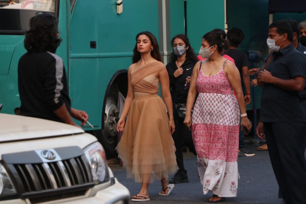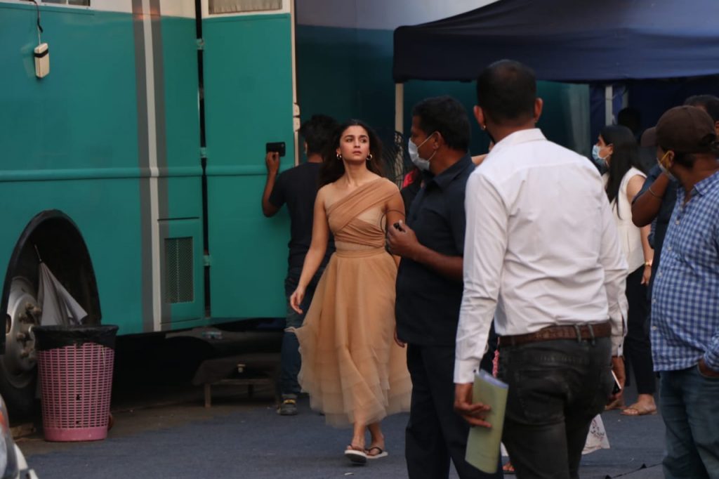 आलिया के सेट पर सोशल डिस्टन्सिंग का पालन भी होता दिखा। हालांकि शूट के चलते आलिया ने तो मास्क नहीं पहना था लेकिन उनके आस पास सभी ने मास्क लगाया हुआ था।
